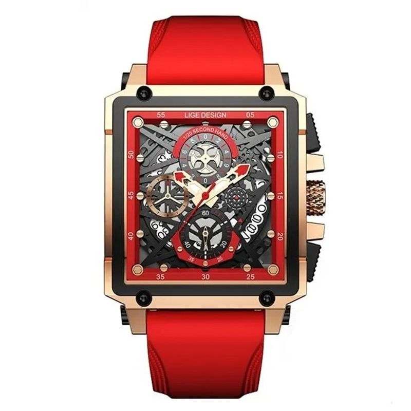 Ceas barbatesc Lige Rosu Silicon Otel Afisare data Quartz Analog Ceas barbatesc Lige Rosu Silicon Otel Afisare data Quartz Analog