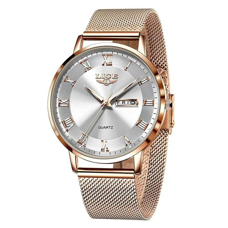 Ceas dama de mana Lige Elegant Analog Casual Fashion Top Brand Quartz Auriu Alb Ceas dama de mana Lige Elegant Analog Casual Fashion Top Brand Quartz Auriu Alb