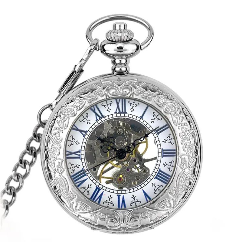 Ceas de buzunar vintage Mbrands mecanic skeleton argintiu Ceas de buzunar vintage Mbrands mecanic skeleton argintiu