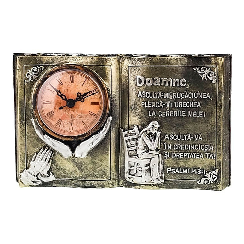 Ceas de masa, In forma de carte cu citat religios, 24 cm, 1693H-1 Ceas de masa, In forma de carte cu citat religios, 24 cm, 1693H-1