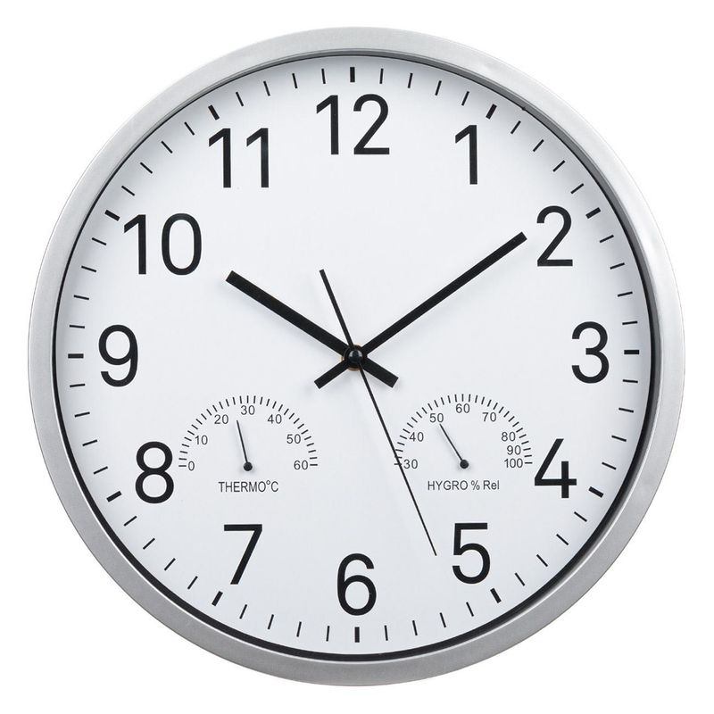 Ceas de perete, model statie meteo, argintiu, diametru 34cm, sticla si plastic Ceas de perete, model statie meteo, argintiu, diametru 34cm, sticla si plastic