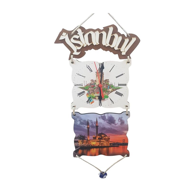 Casa si GradinaDecoratiuniCeasuriCeas de perete ornamental cu desen Istanbul Panaroma din lemn, 44 x 17 cm, 184 gr, multicolor alb
