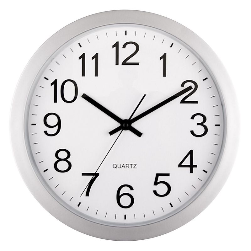 Ceas de perete quartz, 30cm, culoare alb/argintiu, indicatori negri, material sticla/plastic Ceas de perete quartz, 30cm, culoare alb/argintiu, indicatori negri, material sticla/plastic