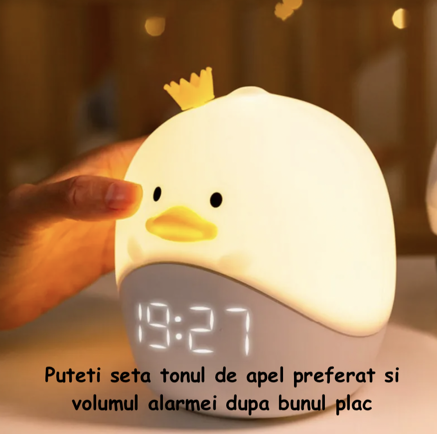 Cu un model animalier adorabil si dimensiuni compacte (107x106x115mm), acest ceas desteptator inteligent si lampa de noptiera adauga un plus de personalitate si stil in orice incapere.