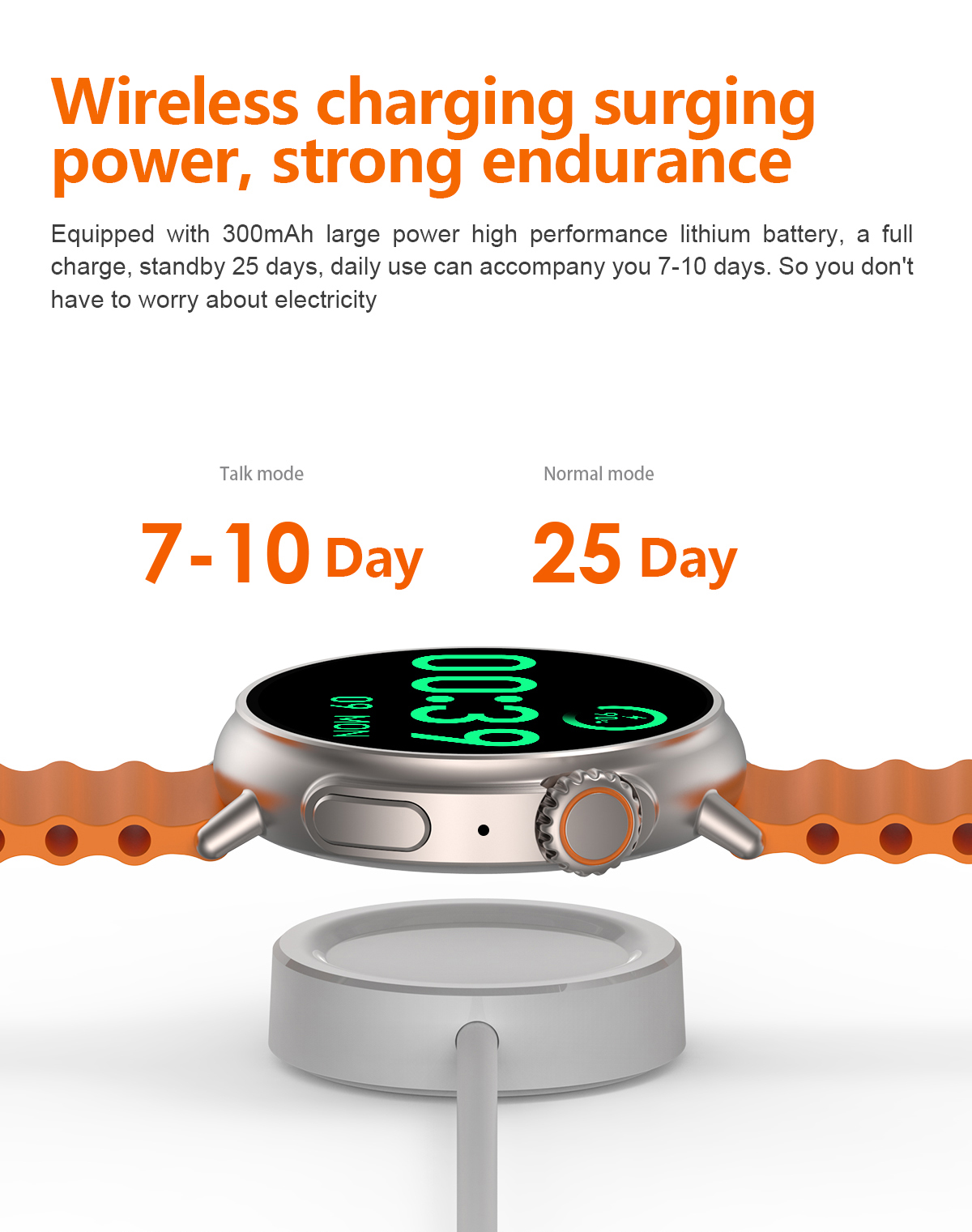 Bateria de inalta calitate de300 mAhofera o durata de utilizare intre3-5 zile(in functie de utilizare).