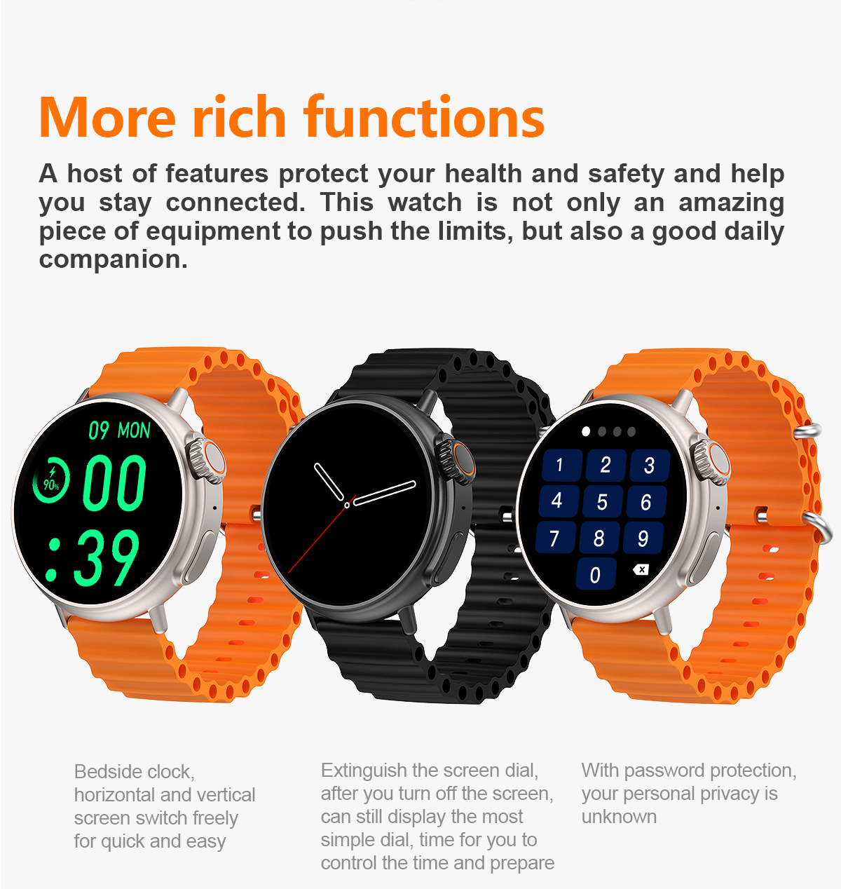 Acest ceas inteligent va poate monitorizaritmul cardiac,monitorizarea somnului,monitorizarea nivelului de stres, precum si alte functii pentru a obtine un management total al sanatatii de la incheietura mainii.