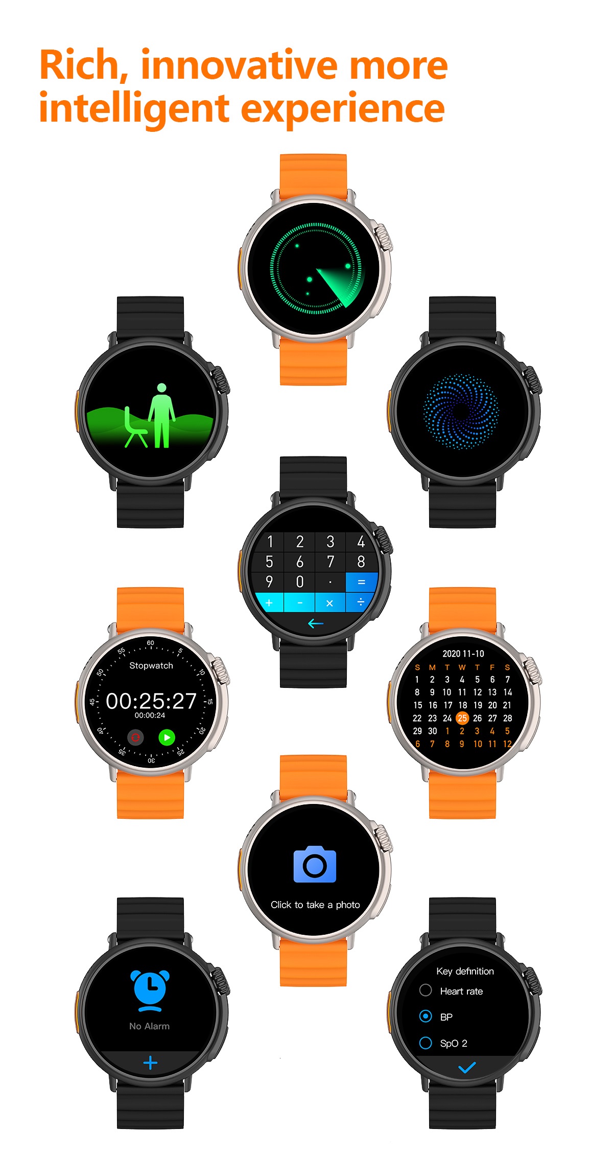 Fitness Tracker poate monitoriza ritmul cardiac, timpul, distanta si caloriile a o multime de activitati sportive, cum ar fi plimbarea, ciclism, drumetii, baschet, ping-pong, fotbal, badminton etc.