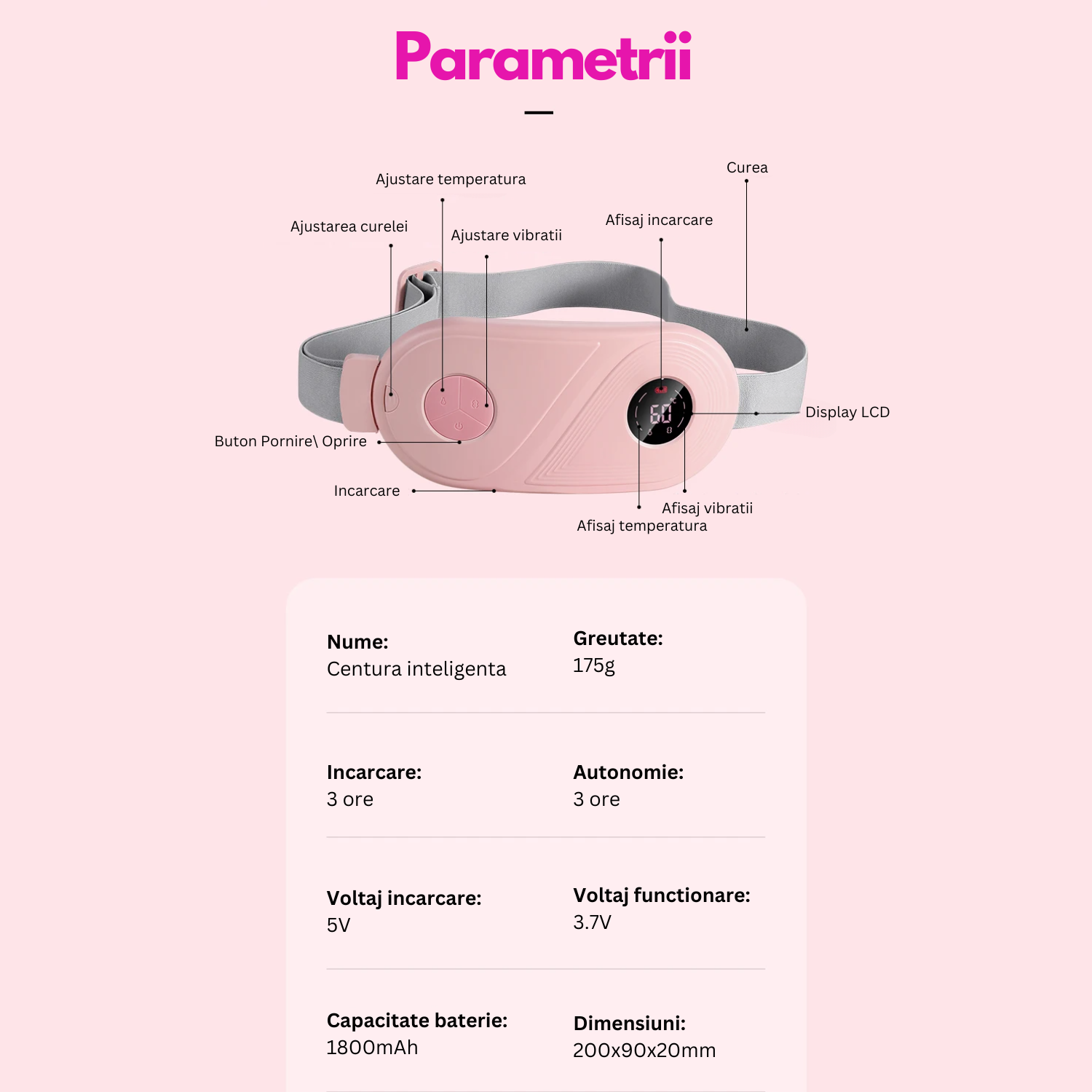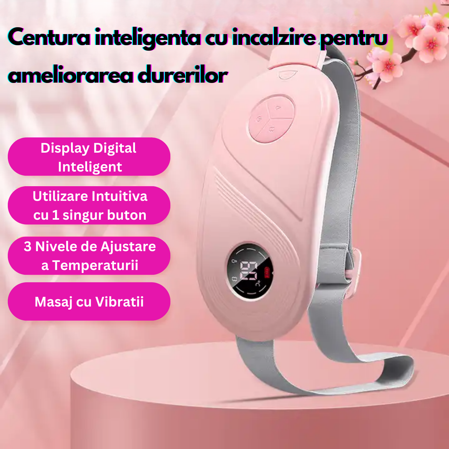 Aceasta centura abdominala premium reprezinta varful inovatiei in alinarea durerii si relaxare. Combinatia sa de caldura, masaj si design stilat transforma gestionarea durerilor menstruale si lombare intr-o experienta de rasfat de neuitat. Este mai mult decat un dispozitiv terapeutic; este un simbol al ingrijirii de sine si al luxului personal. Alege sa iti oferi sau sa oferi celor dragi nu doar confort, ci o experienta completa de bine si rasfat.