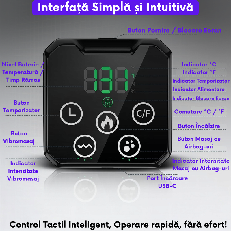 Tehnologie 3-in-1: Incalzire, vibratii, compresie cu aer