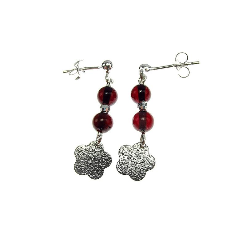 Cercei argint floricica si chihlimbar rosu Cercei argint floricica si chihlimbar rosu
