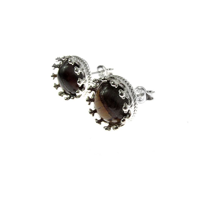 Cercei argint model coroana cu ochi de tigru Cercei argint model coroana cu ochi de tigru