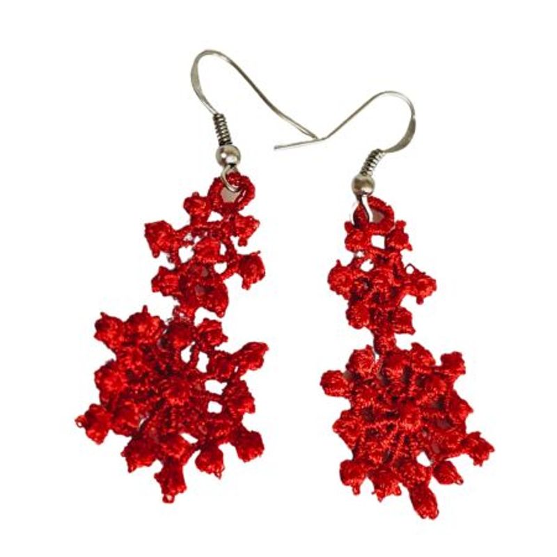 Cercei Brodati Ariale Zambetul Zapezii, fulgi de nea, rosu Cercei Brodati Ariale Zambetul Zapezii, fulgi de nea, rosu