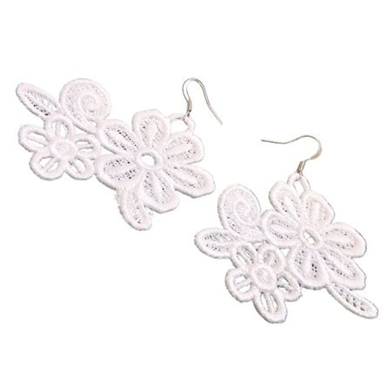 Cercei Brodati Eleganta Florara Ariale, Flori, Alb Cercei Brodati Eleganta Florara Ariale, Flori, Alb