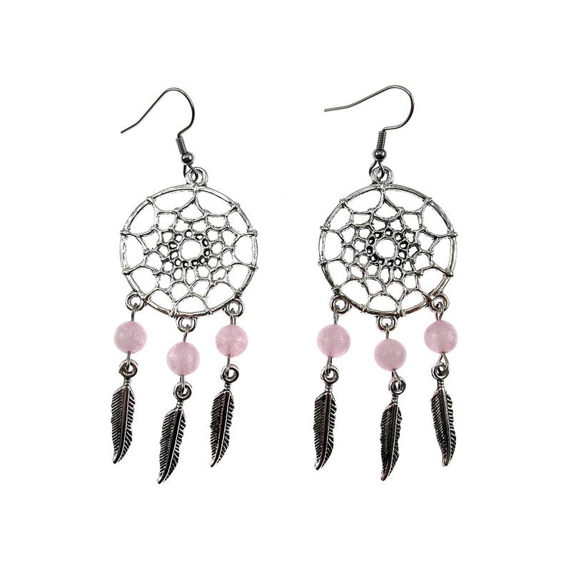 Cercei candelabru Dreamcatcher cu cuart roz natural Cercei candelabru Dreamcatcher cu cuart roz natural