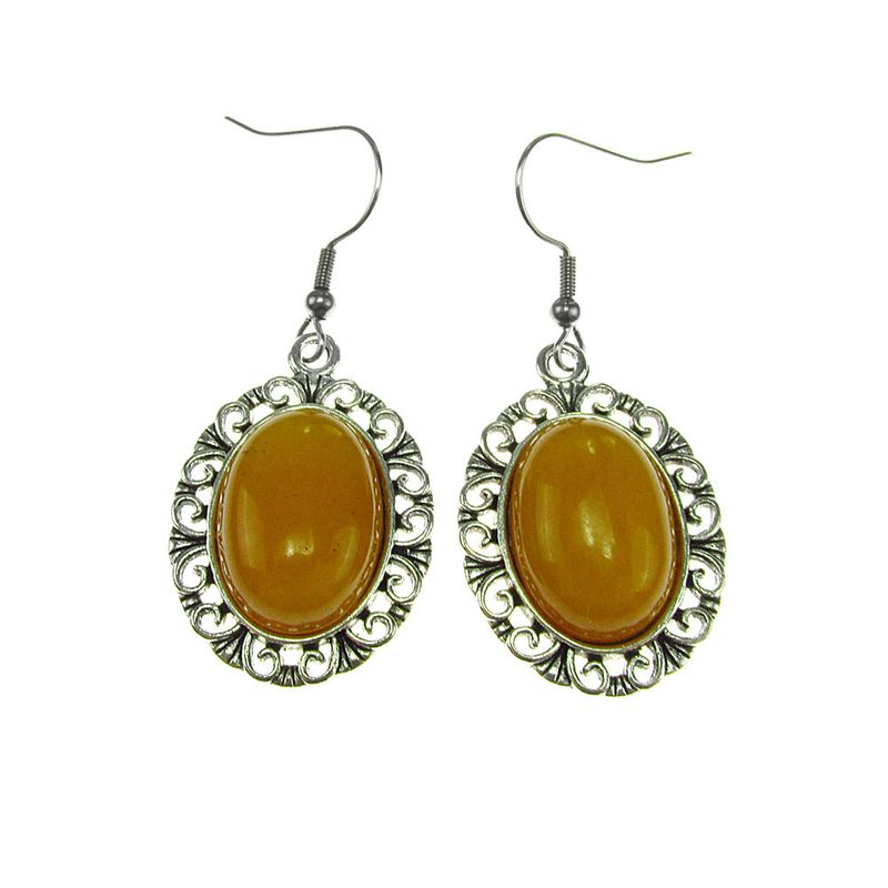 Cercei candelabru filigran cu jad galben Cercei candelabru filigran cu jad galben