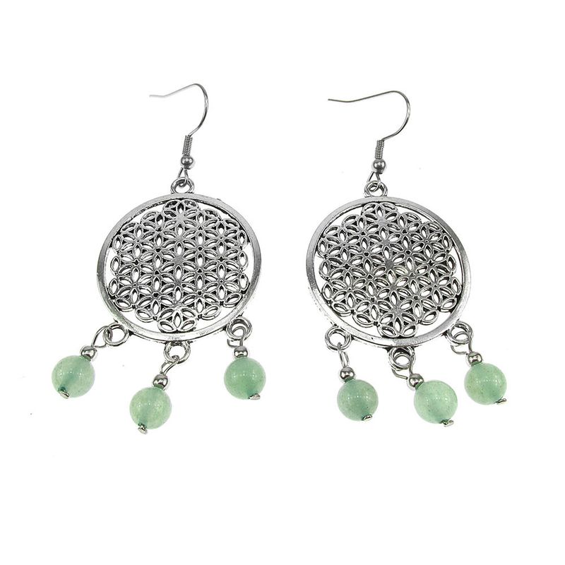 Cercei mari Floarea Vietii cu aventurin natural Cercei mari Floarea Vietii cu aventurin natural