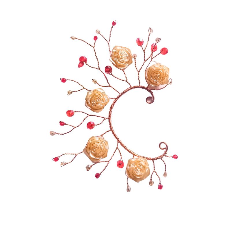 Cercel ear wrap cu flori pastelate, marime unica, handmade Cercel ear wrap cu flori pastelate, marime unica, handmade