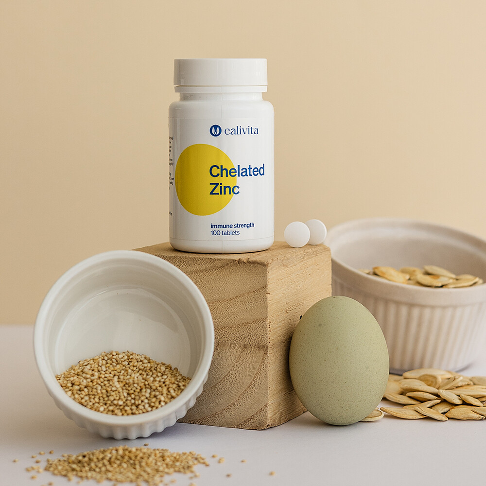 Chelated Zinc Supliment de Zinc Organic pentru Mentinerea Sanatatii Parului, Pielii şi a Unghiilor (100 tablete) - Calivita