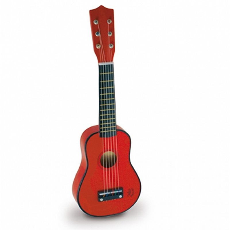 Chitara rosie din lemn lacuit cu 6 corzi din plastic Chitara rosie din lemn lacuit cu 6 corzi din plastic