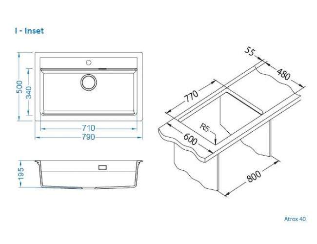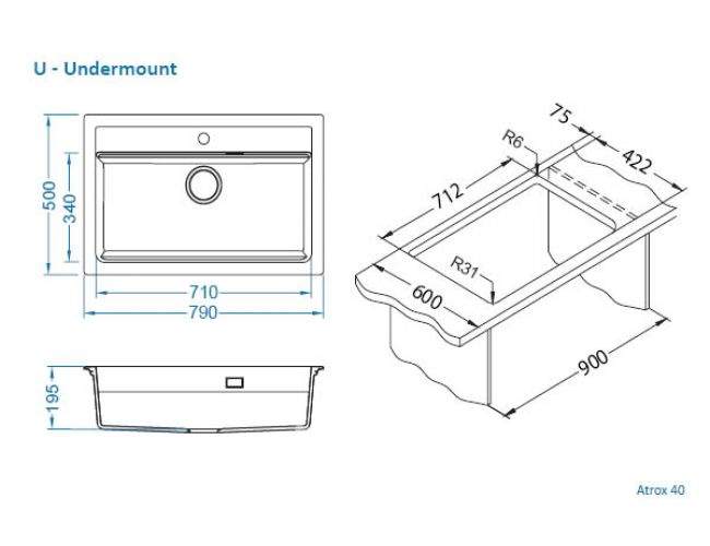Chiuveta Alveus Atrox 40 are o forma dreptunghiulara, cu o cuva generoasa, cu dimensiunea de 71 x 34 x 19.5 cm, potrivita pentru spalarea vaselor de dimensiuni mari. Aceasta chiuveta este confectionata dintr-un amestec compozit de calitate superioara, numit granital. Datorita procesarii atente a materialului, suprafata chiuvetei de bucatarie este neteda, placuta la atingere si permite o curatare usoara. In plus, ii ofera si alte avantaje,cum ar fi: rezistenta la temperaturi inalte, la utilizare intensa, rezistenta maxima la socuri termice si mecanice, nu se fisureaza si nu se zgarie.