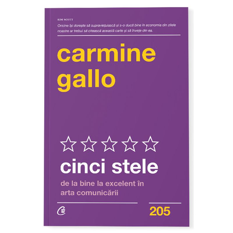 Cinci stele este o lectura practica si o calatorie usor de parcurs printre structurile dezvoltarii personale (depasirea fricilor, analizarea experientelor trecute ca succese). Gallo ne ofera sfaturi despre cum sa povestim, adica sa ne apropiem de ceilalti, mai ales de clienti si de investitori. - FINANCIAL TIMES