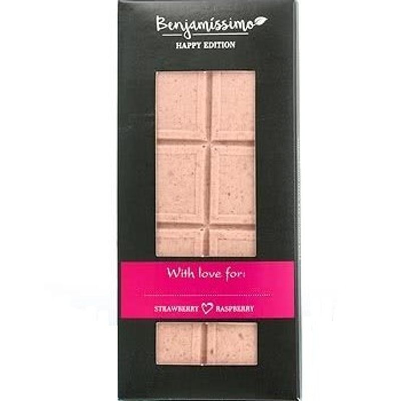 Ciocolata cu capsuni si zmeura bio, 60g, Benjamissimo Ciocolata cu capsuni si zmeura bio, 60g, Benjamissimo
