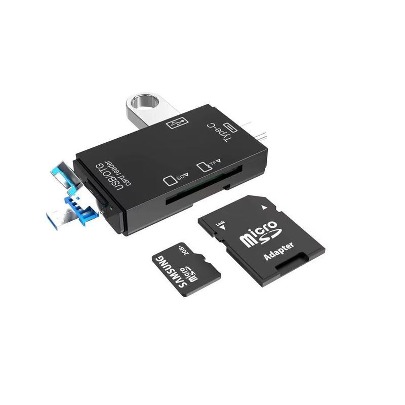 Cititor de Carduri 5 in 1 Welora®, USB, USB Tip-C 3.1, Micro USB, Card SD, MicroSD/TF, Viteza de citire 480mb/s, Universal, Plug&Play, Calitate Premium, Dimensiuni 76mm x 27mm x 10mm, Negru