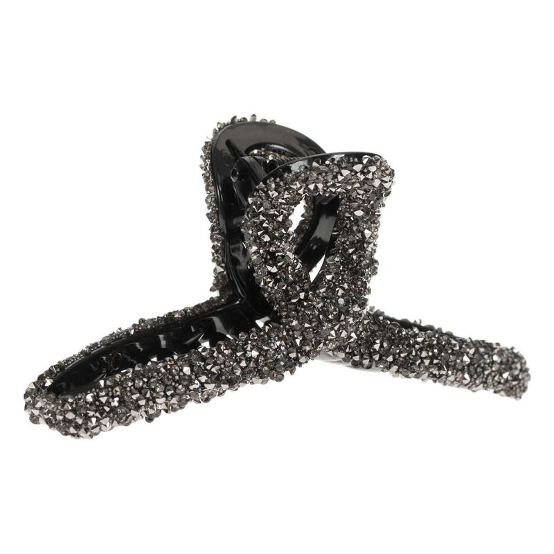 Clama par, model bucla, strass gri, negru, 11cm Clama par, model bucla, strass gri, negru, 11cm