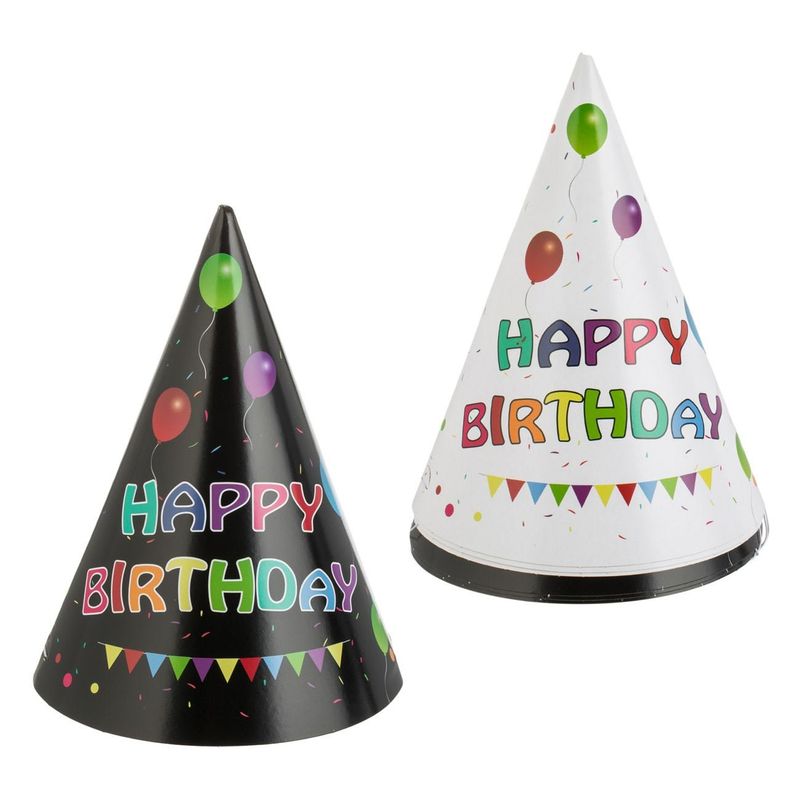 Coifuri petrecere carton, happy birthday, set 6 bucati, multicolor, 16cm Coifuri petrecere carton, happy birthday, set 6 bucati, multicolor, 16cm