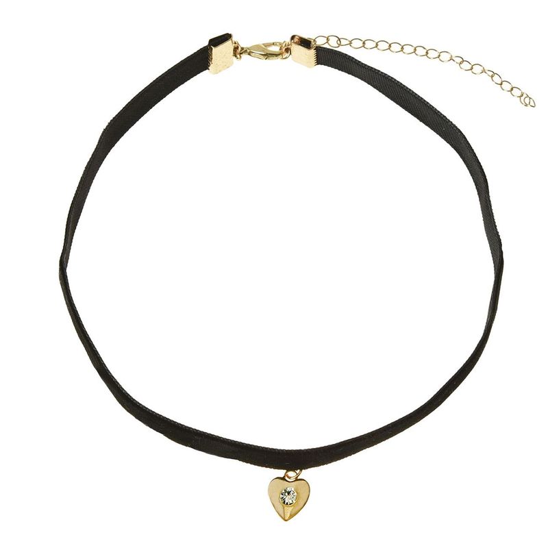 Colier choker velvet negru, pandantiv inima aurie, fete Colier choker velvet negru, pandantiv inima aurie, fete