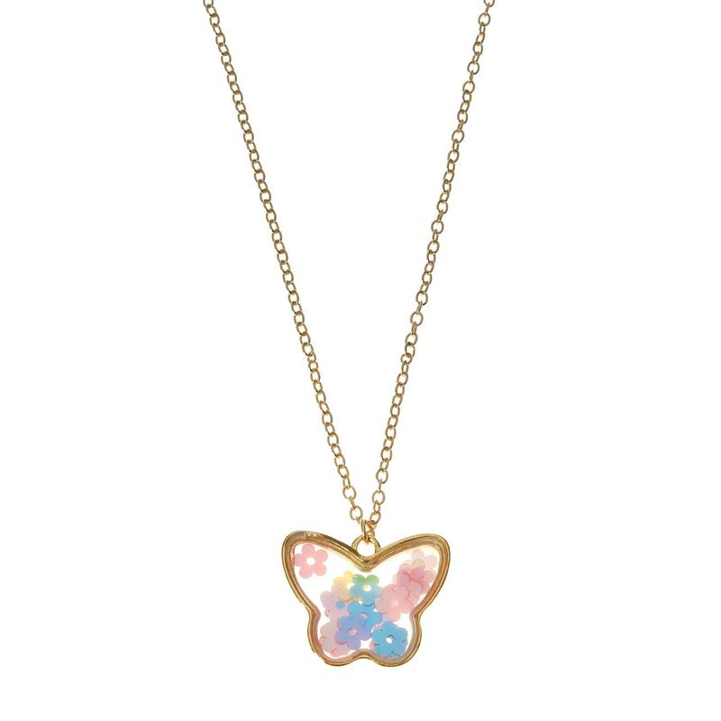 Colier copii, fluture, lant metal auriu, pandantiv multicolor Colier copii, fluture, lant metal auriu, pandantiv multicolor