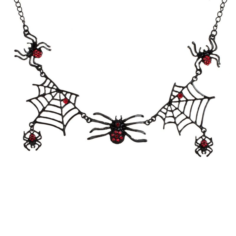 Colier fara brand, model gothic, culoare negru, paianjeni metalici, strass rosu Colier fara brand, model gothic, culoare negru, paianjeni metalici, strass rosu