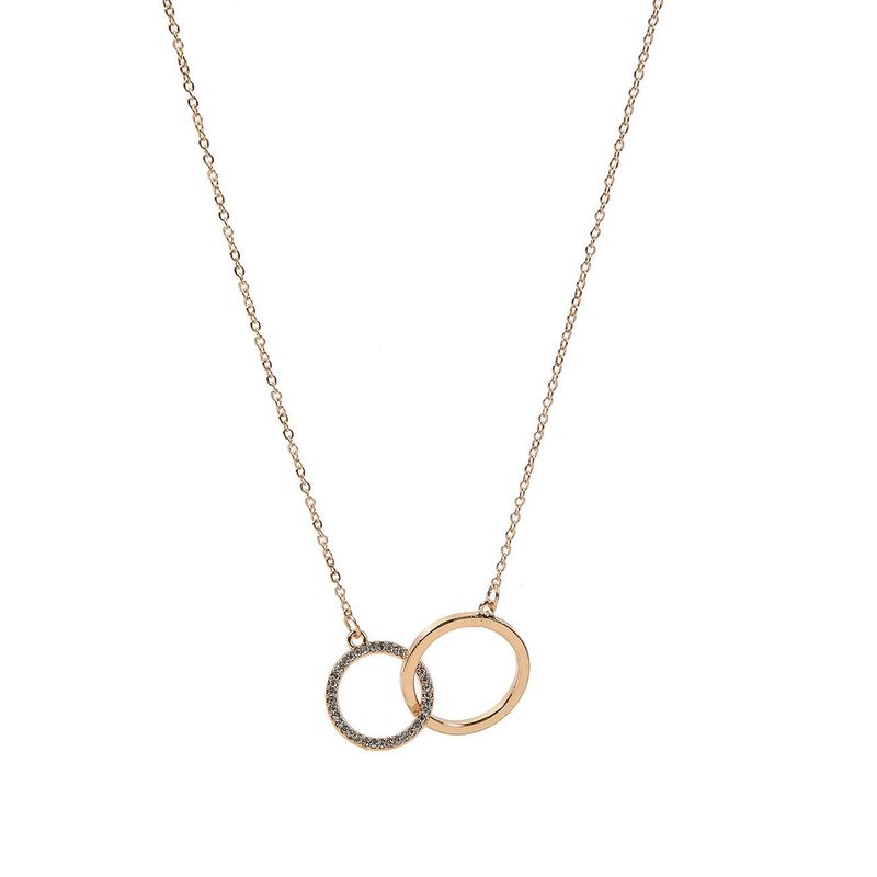 Colier femei, model lant, culoare aurie, inele strass Colier femei, model lant, culoare aurie, inele strass