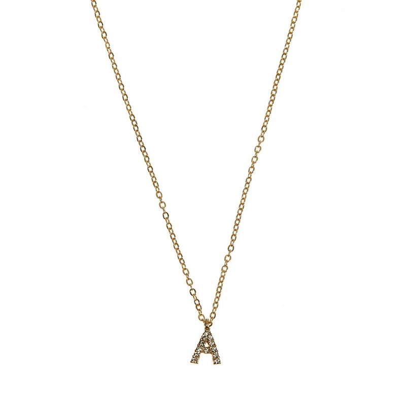 Colier femei, monograma a, strass, lant auriu Colier femei, monograma a, strass, lant auriu
