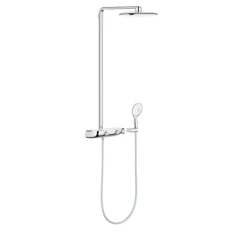 Coloana de dus cu baterie termostatata crom - alb Grohe RainShower System SmartControl 360 Mono Detalii Coloana de dus cu baterie termostatata crom - alb Grohe RainShower System SmartControl 360 Mono Gama Grohe Rainshower este creata pentru baile unde dusul este atat o oaza de relaxare dupa o zi lunga, cat si o sursa de energie dimineata sau o revigorare dupa efort fizic. Cu un design sofisticat si tehnologii inovatoare, transforma baia intr-un spatiu intim al ritualurilor care te fac sa te simti bine. Conceptul sistemelor pentru dus Grohe Rainshower este bazat pe imbinarea calitatii produselor cu un design simplu si in acelasi timp sofisticat. Experienta folosirii este cea care conteaza, insa o atentie deosebita este adresata atat formelor, cat si tehnologiilor gamei. Astfel, o palarie de dus din gama RainShower va fi intotdeauna si un element de design care va completa ambientul baii. Printre alte produse disponibile in gama Grohe Rainshower se numara: para de dus, set para si furtun dus, palarie dus si sistem complet pentru dus. Sistemul inovativ Grohe Smartcontrol te lasa sa alegi volumul de apa si tipul de dus preferat. Operatiunile sunt simple si usoare pentru intreaga familie, chiar si pentru copii, tehnologia Grohe find baza acestui sistem de dus. Senzivitatea fara rival a elementelor termice prin tehnologia Grohe Smartcontrol iti garanteaza livrarea fluxului de apa la temperatura dorita intr-o fractiune de secunda si il mentine constant pe intreaga perioada a dusului.confortul maxim este garantat cu noua para de dus XXL. Forma ovala a parei masoara 36 cm si iti acopera intreg corpul. Si, indiferent care sunt preferintele tale in materie de volum de apa sau temperatura, totul este doar la o simpla apasare de buton.