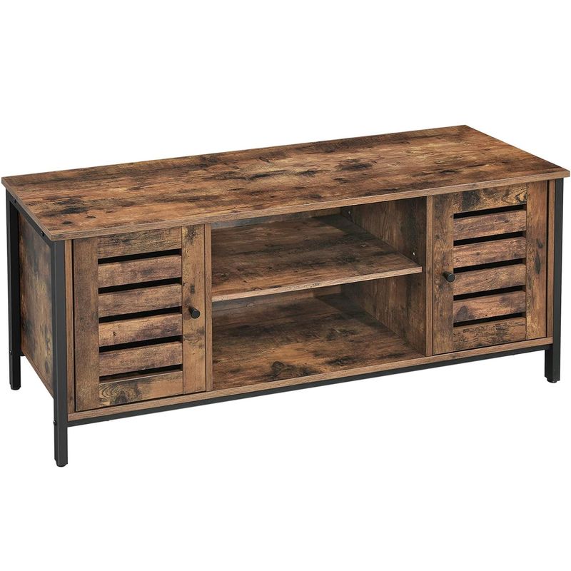 Specificatii: Culoare: Maro rustic (BX), Greige (MB) Material: PAL, metal Dimensiunea produsului: 110 x 40 x 50 cm Greutate produs: 43,6 lb (19,8 kg) Capacitatea de incarcare statica a suprafetei superioare: 110 lb (50 kg) Capacitatea de incarcare statica a raftului din mijloc: 33 lb (15 kg) Unele obiecte sunt mai mari decat altele, si intelegem asta - de aceea aceasta consola pentru televizor se mandreste cu un raft reglabil cu 3 optiuni de inaltime in mijloc, ceea ce iti permite sa potrivesti mai usor obiectele mai inalte acolo unde ai nevoie de ele.Cu un suport reglabil sub fiecare picior metalic al acestui dulap TV stabil, televizorul, consolele de jocuri si colectia de filme vor ramane toate la locul lor chiar si pe podele usor denivelate.Cu un amestec de metal durabil si lemn dens, acest dulap TV spatios cu depozitare ofera televizorului dvs. o casa pentru anii urmatori. Ofera o senzatie industriala, rustica oricarei case.Asamblati cu usurinta: cu instructiuni usor de urmat, puteti avea acest dulap TV cu depozitare montat inainte ca serialul dvs. preferat sa inceapa.