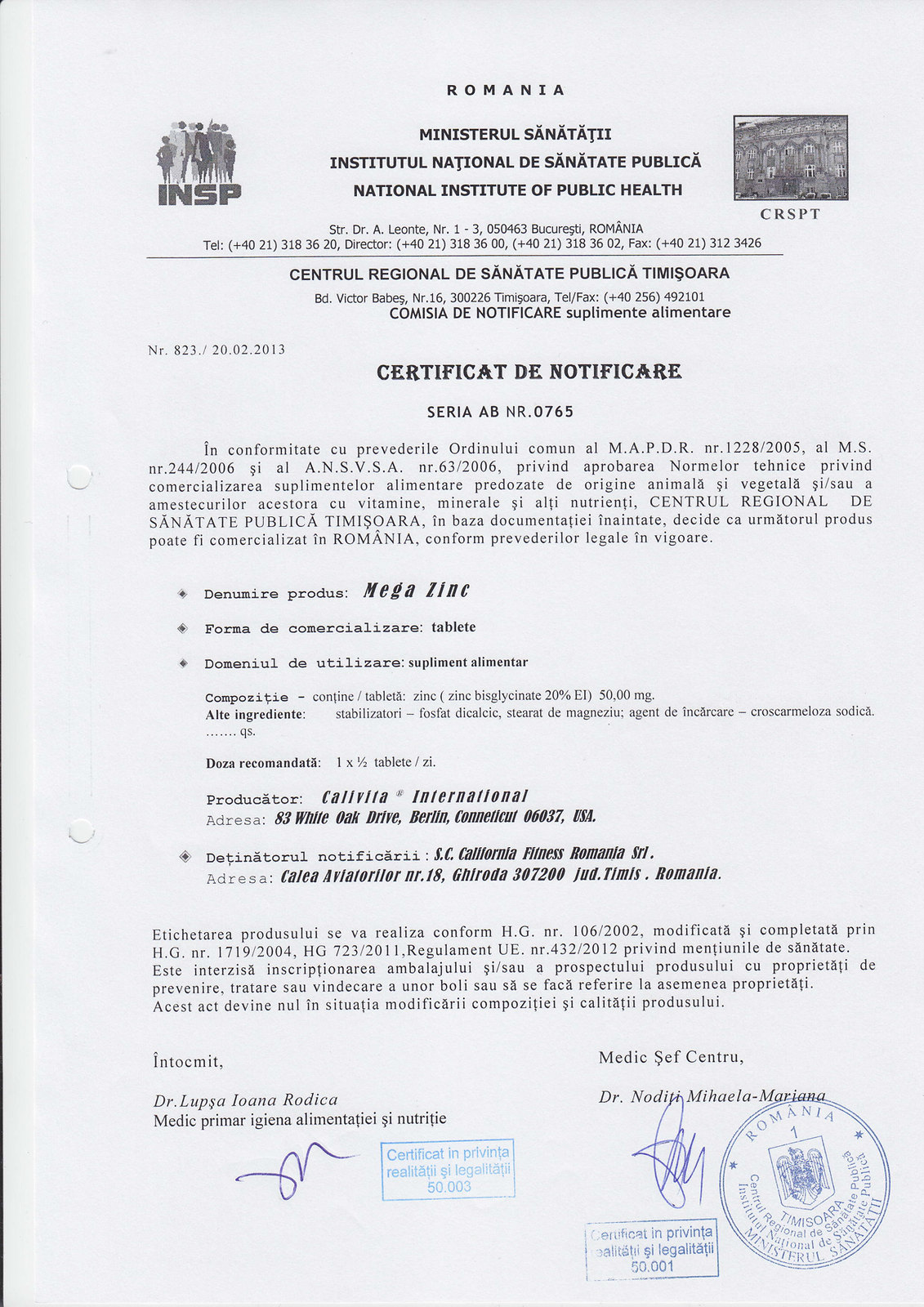 Observatie: Toate produsele au Certificat de Control al Calitatii, Asigurarea Calitatii si de bune Practici de Fabricatie