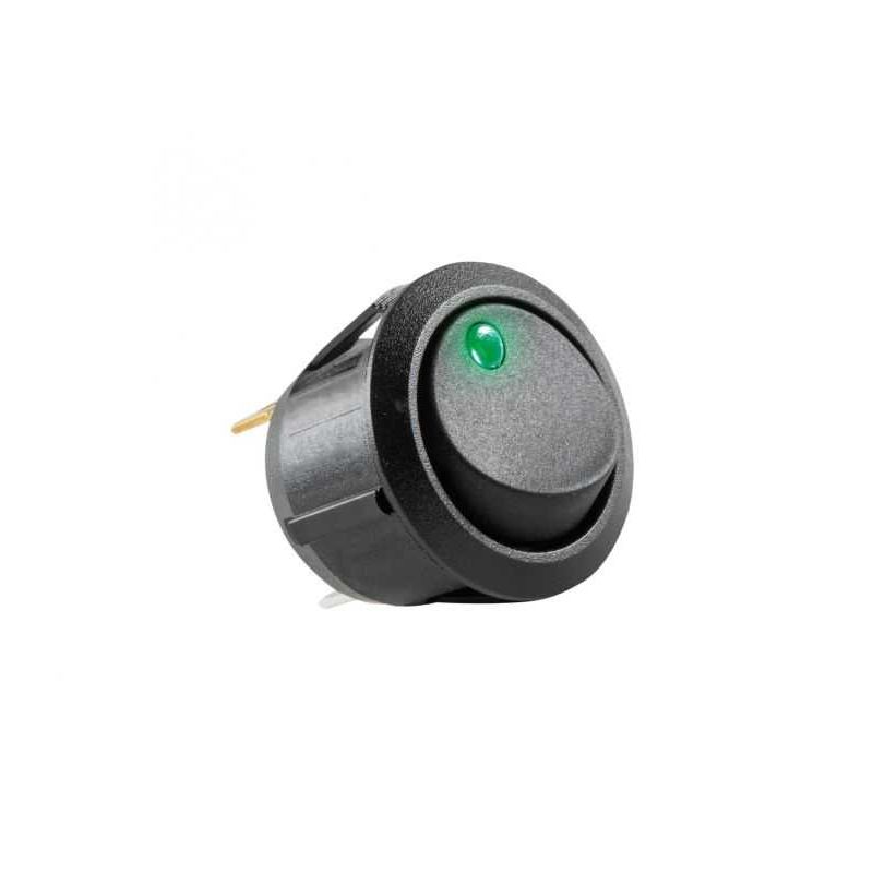 Comutator basculant 12V 20A ON-OFF cu retinere 1 contact cu LED verde incastrare 20 mm Comutator basculant 12V 20A ON-OFF cu retinere 1 contact cu LED verde incastrare 20 mm