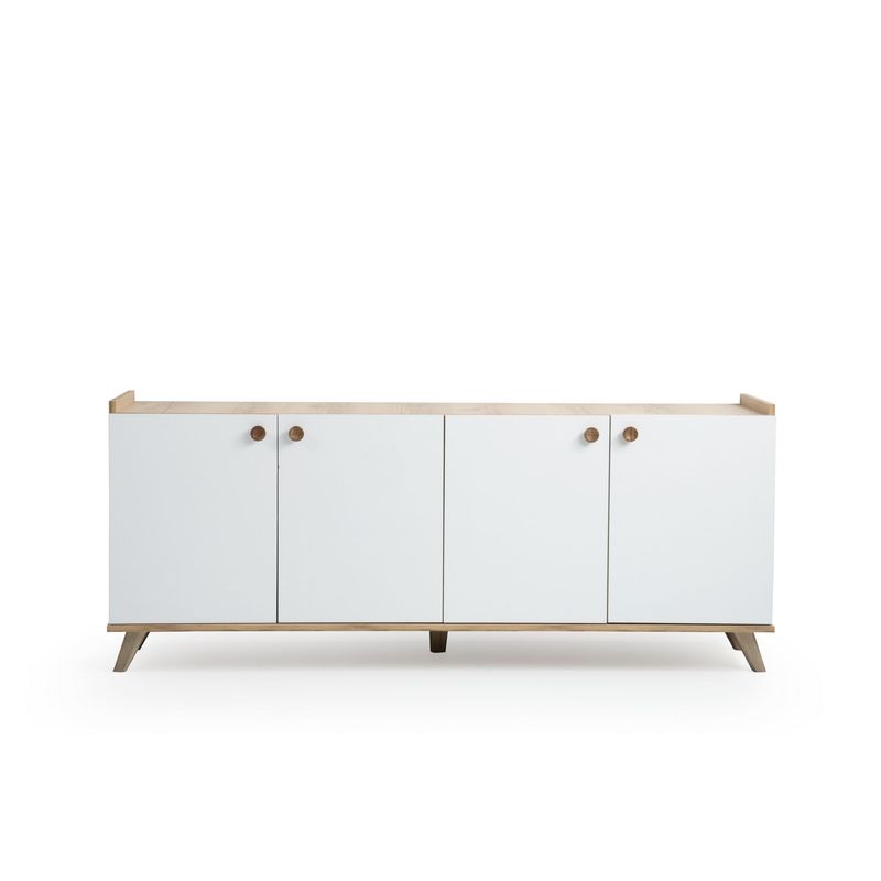 Cu liniile sale curate, estetica minimalistă și paleta de culori naturale, consola noastră scandinavă se integrează fără efort în orice temă de design interior. Combinația de culori de stejar și alb adaugă o notă de eleganță și rafinament spațiului dvs., creând o atmosferă liniștitoare în care vă va plăcea să veniți acasă.