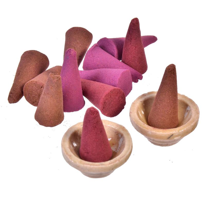 Conuri parfumate, model santal, multicolor, set 100 bucati, suport ceramica Conuri parfumate, model santal, multicolor, set 100 bucati, suport ceramica