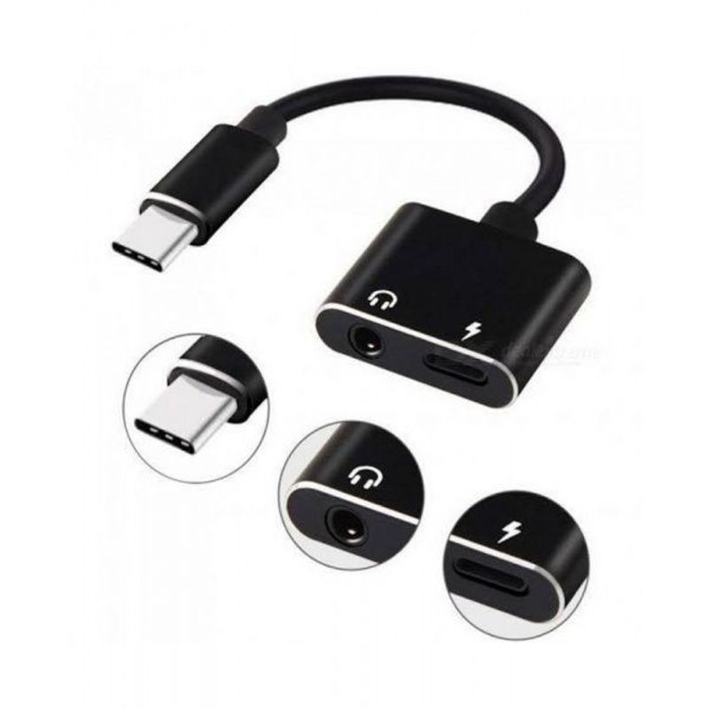 Convertor USB-C tata la 3,5 mm / USB-C mama , culoare: negru Convertor USB-C tata la 3,5 mm / USB-C mama , culoare: negru