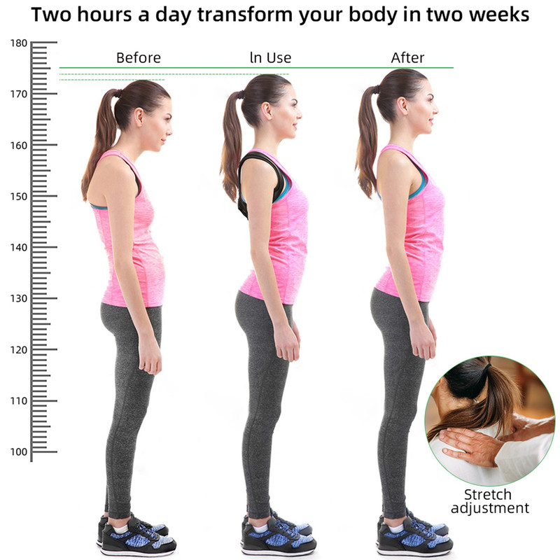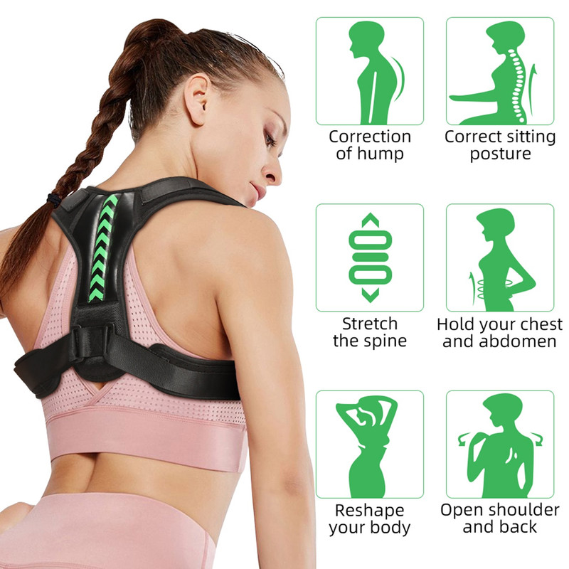 1. Corector de postura reglabil pentru indreptare spate, coloana, clavicula si umeri, realizat din matrial respirabil si fara latex. 2. Cureaua de sustinere a umerilor trage inapoi partea superioara a spatelui in pozitia corecta. Imbunatatiti-va toata postura corpului in timpul muncii sau al vietii! 3. Puteti sa-l utilizati nu numai atunci cand stati la calculator sau conducand masina, ci si atunci cand faceti sport sau gradinarit. In plus, il puteti folosi acasa, cand faceti treburi casnice sau va uitati la televizor. 4. Curea de postura cu neopren usor, poate fi purtata confortabil sub sau peste haine. Corectati-va postura pe tot parcursul zilei. Se poate pune si adjusta singur, fiind usor de utilizat si purtat. 5. Acest suport de spate usor ar trebui sa fie folosit zilnic. Primele doua zile folositi-l doar 10-20 de minute, apoi adaugati 10 minute in fiecare zi. Spatele si umerii dvs. se vor ajusta incet si va veti crea o memorie musculara pentru postura corecta. 6. Alinierea corecta a posturii dvs. elimina presiunea din zonele cheie, ameliorand astfel durerile de spate, gat, umar si clavicula.