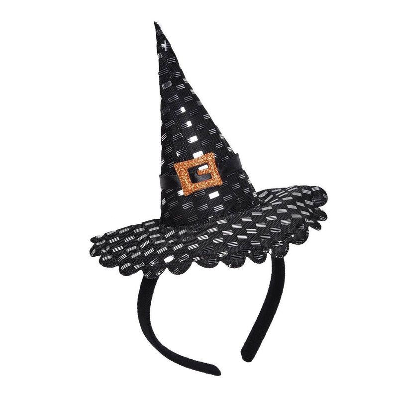 Coronita Deghizare Halloween, Model Cu Palarie Vrajitoare, Detalii Argintii, Glitter Portocaliu, Negru Coronita Deghizare Halloween, Model Cu Palarie Vrajitoare, Detalii Argintii, Glitter Portocaliu, Negru