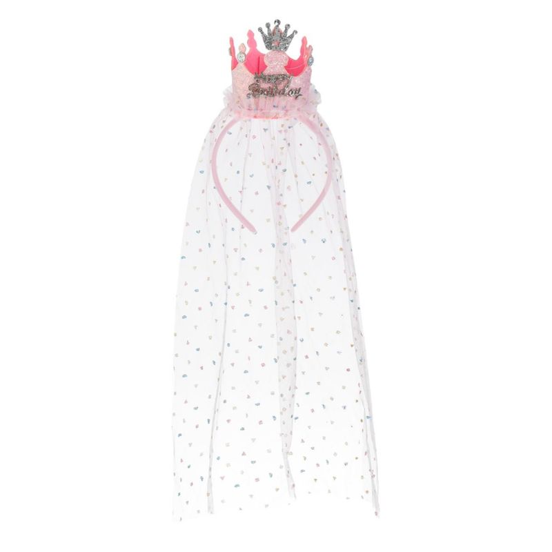 Coronita petrecere, model "happy birthday", roz argintiu, voal tul, 3+ ani Coronita petrecere, model "happy birthday", roz argintiu, voal tul, 3+ ani