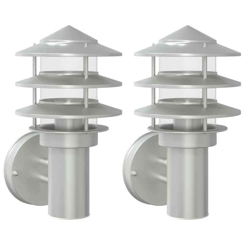 Corpuri de iluminat exterior de perete 2 buc argintiu otel inox Corpuri de iluminat exterior de perete 2 buc argintiu otel inox