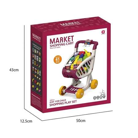 Cos de cumparaturi supermarket pentru copii cu sunete si lumini WePro Store, 41 de accesorii, fructe, legume, bani, Violet, 3 ani +