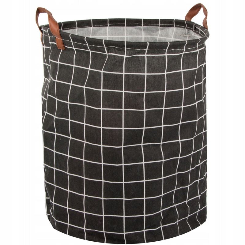 Cos depozitare jucarii,haine,diverse, Marime XL, Welora®, Capacitate 45 L, Imprimeu geometric cu patrate, Inaltime 40 cm, Diametru 35 cm, Negru/Alb