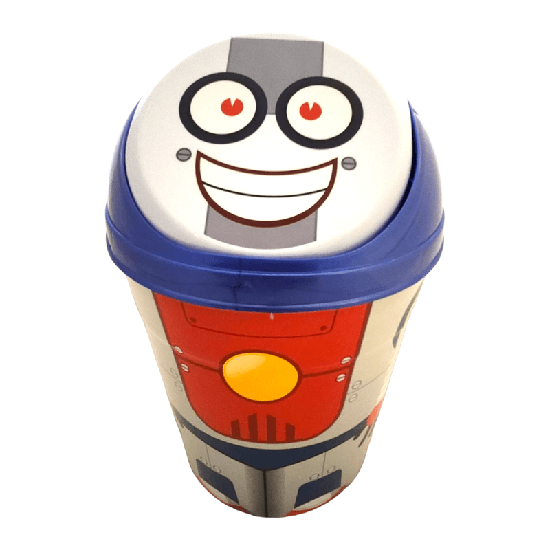 Cos gunoi,camera copil,plastic,capac rabatabil,imprimeu robotel zambitor,diametru 30 cm,capacitate 4 litri Cos gunoi,camera copil,plastic,capac rabatabil,imprimeu robotel zambitor,diametru 30 cm,capacitate 4 litri