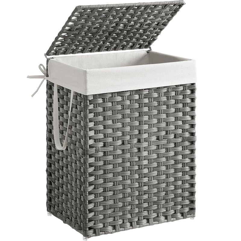 Cos rufe cu capac, ratan sintetic si sac detasabil, 90 L, 46x33x60 cm, gri Cos rufe cu capac, ratan sintetic si sac detasabil, 90 L, 46x33x60 cm, gri