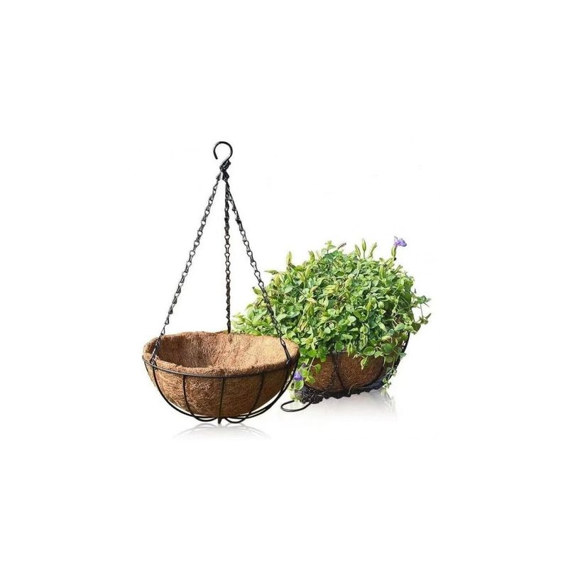 Cos suspendat pentru flori, maro, otel + fibra nuca de cocos, cu lant si carlig, 25cm Cos suspendat pentru flori, maro, otel + fibra nuca de cocos, cu lant si carlig, 25cm